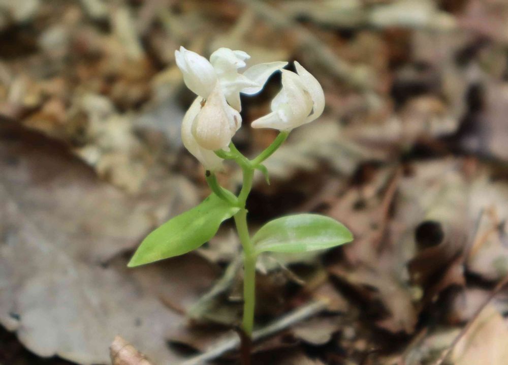 花柄の基部に苞葉が1~2個ある。花は2~3個付き白色。半開状で長さ約1cm。ギンランに似ている。ギンランより小型。