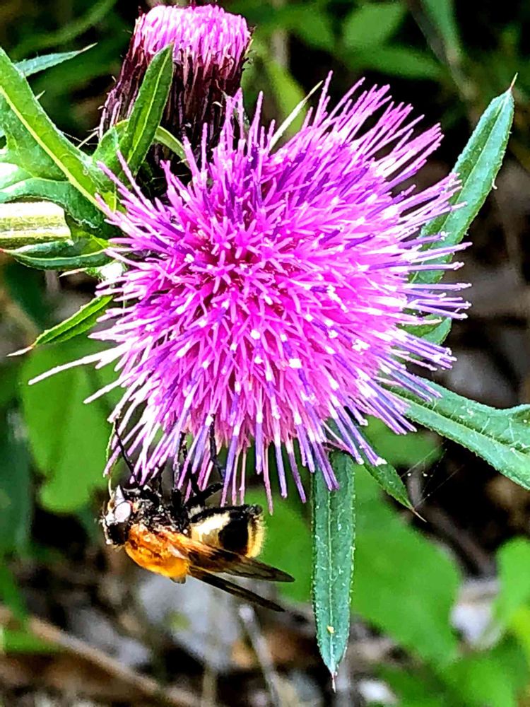 アザミの色が鮮やかで目に付きますよね。持って帰りたかったけれど、トゲがあって断念しました💦同じ所に咲いているといいね٩(*´◒`*)۶♡