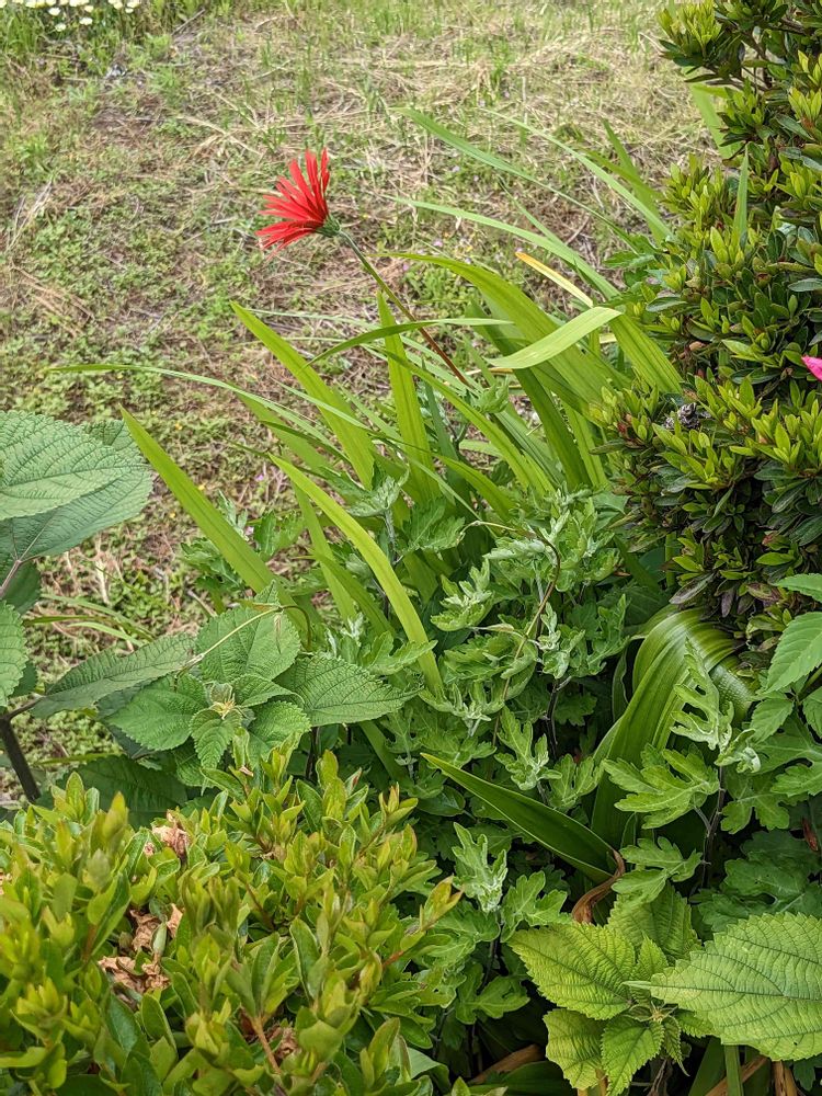 ガーベラ、石垣の先端に!