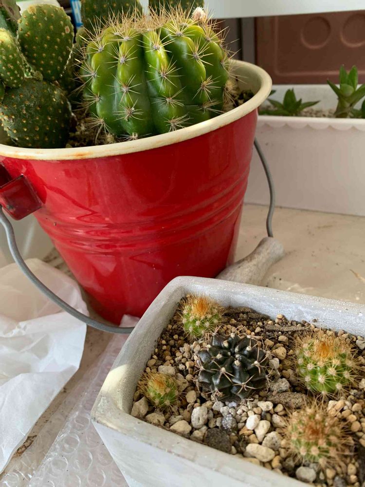キンセイマルさんの赤ちゃんはミニサボテン鉢に寄せ植え。
