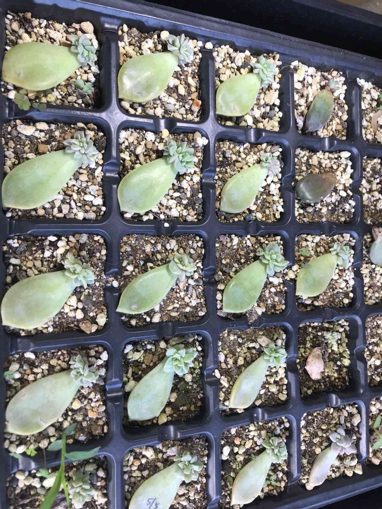 葉挿し用に置いていた、パープルライトやマッコス、ツルギダ、プリドニス、マッコスも一気に芽が出始めました〜