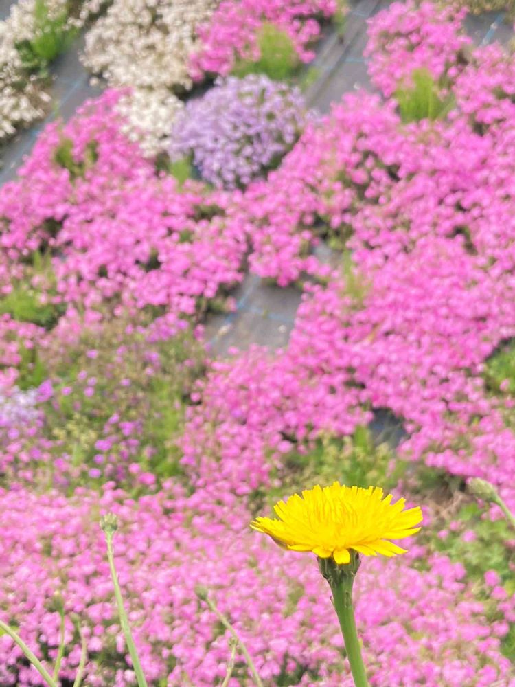 ばぁばの植物さんのお出かけ先,シバザクラ,タンポポの投稿画像