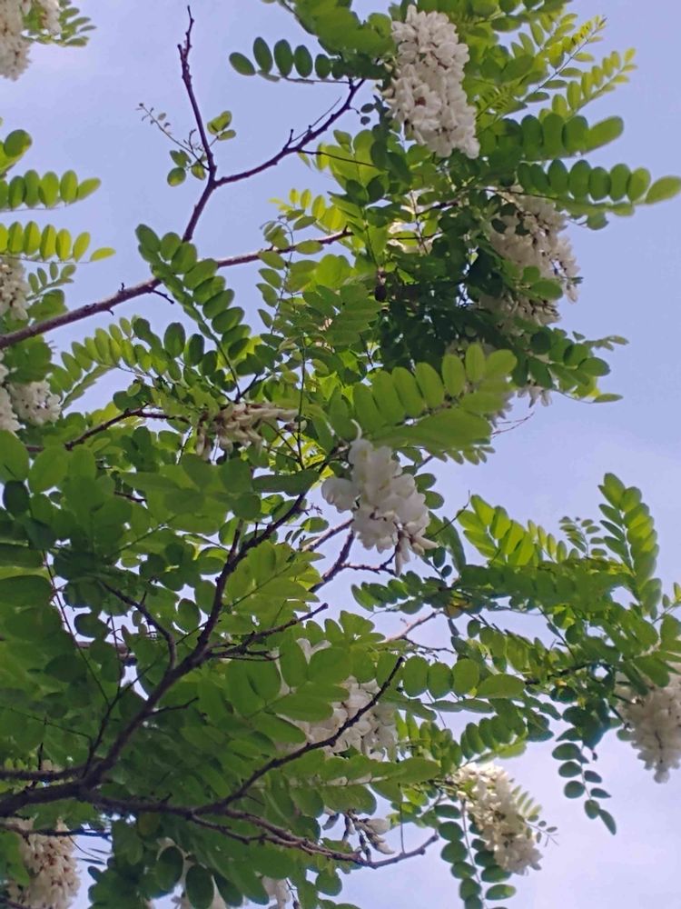 ニセアカシア(マメ科)本名ハリエンジュの木が数本あり チェックに〜クンクン良い匂い💓