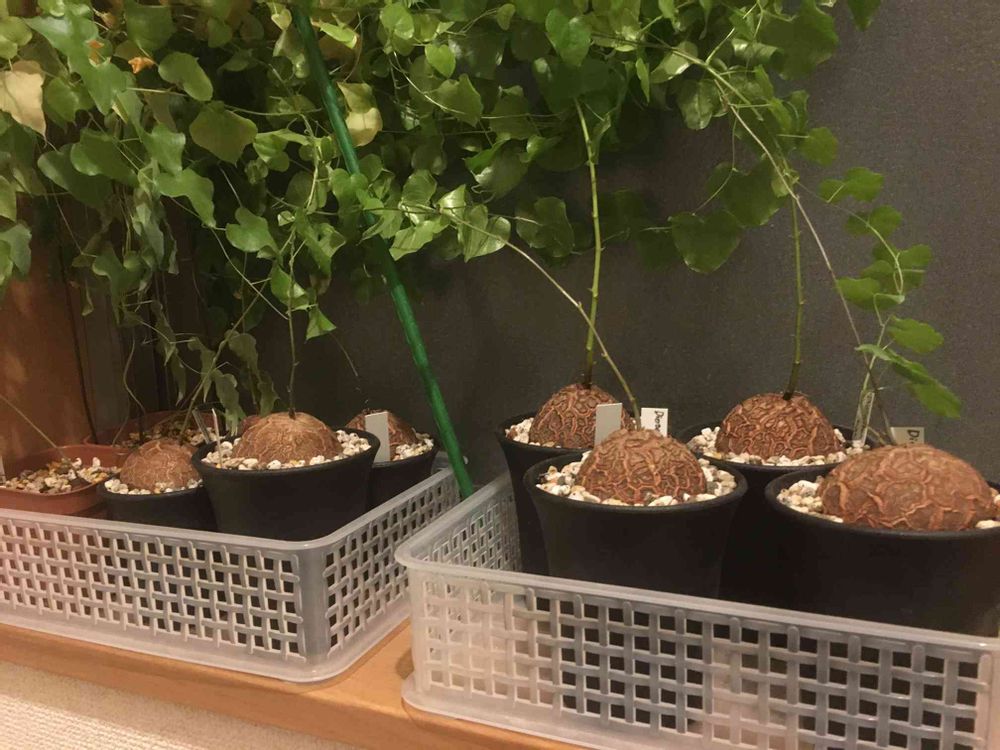 我が家の亀甲竜はまだ葉が生い茂っています🌿 追加で今年も20粒ほど種まきしました。