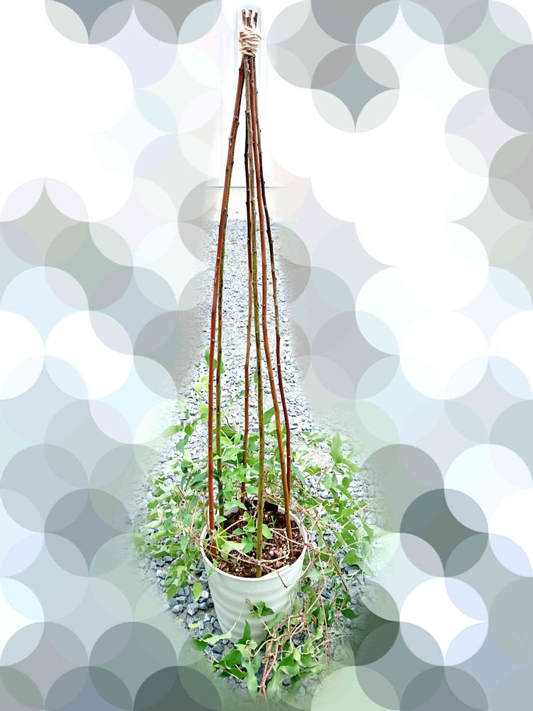 なので、家にあった剪定後の梅の木の枝で、オベリスク風に作ってみました!