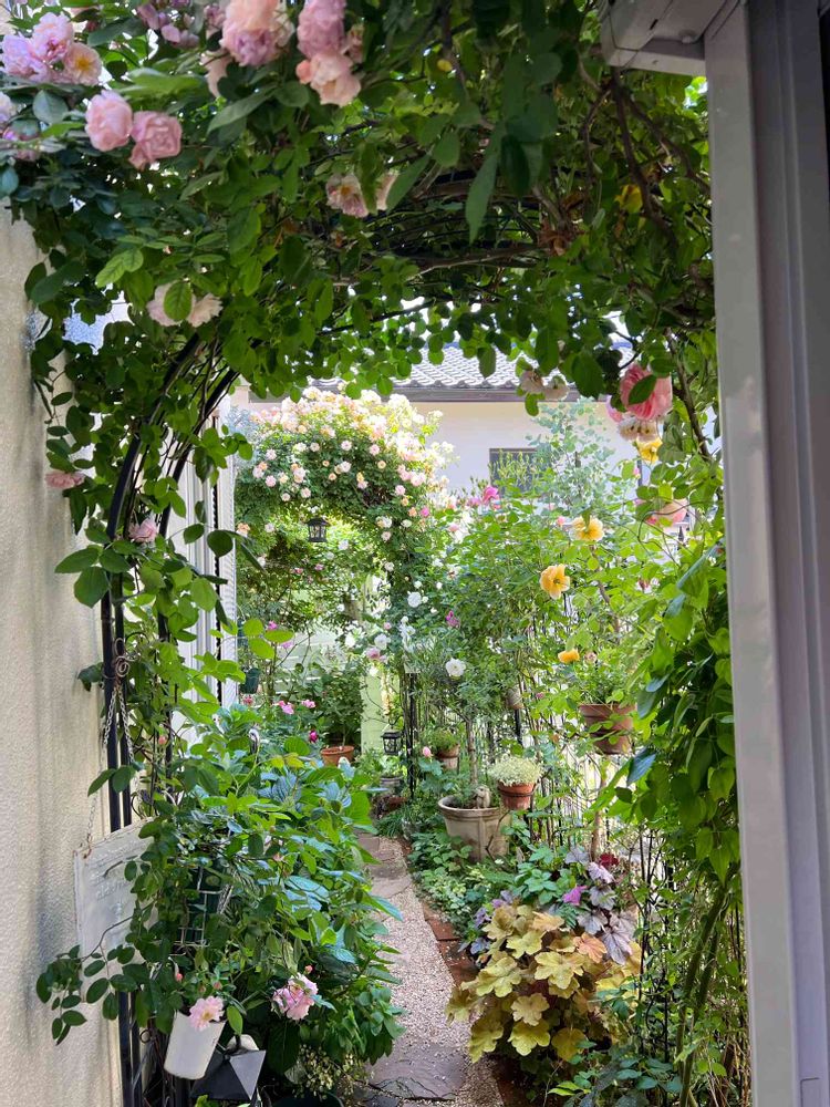 さま、はい手前のアーチ、コーネリアです。奥のアーチがフィリスバイドです😊 アーチはステムの短い薔薇が良いですよね❣️