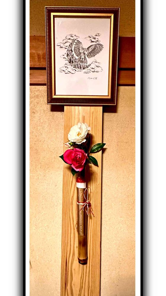 花器は真竹を乾燥させた後に焼きを入れて磨き上げて手作りしたものデス🐶