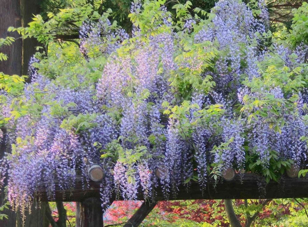 里山歩きの出発地にフジ棚があり、綺麗に咲いていました🎶😄