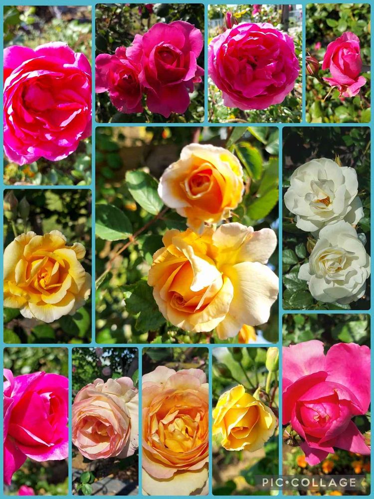 バラの花が沢山咲いています。この日は風が強い為に 静止画像がなかなかとれなくて困りました。