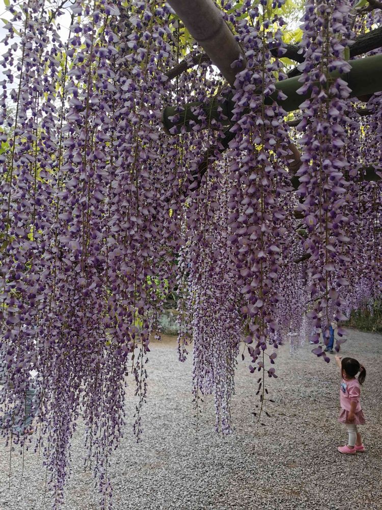たまたま、いた可愛い少女が藤の花の長さと比較出来るかと思い、一緒に写させていただきました。💗