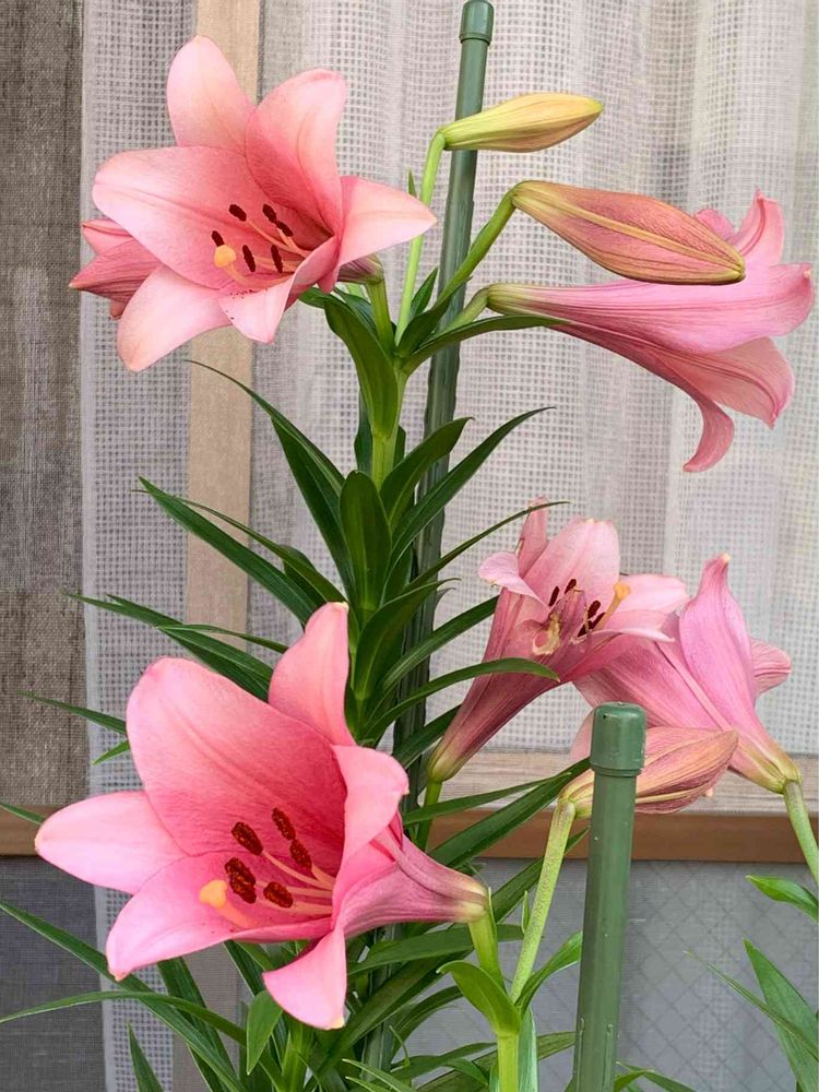 ∩(´∀`)∩ワァイ♪ 沢山咲きましたね(☆∀☆)キラーン!ピンクワールドのテッポウユリ様•*¨*•.¸♬︎やっぱフォルムに品格あるわ〜