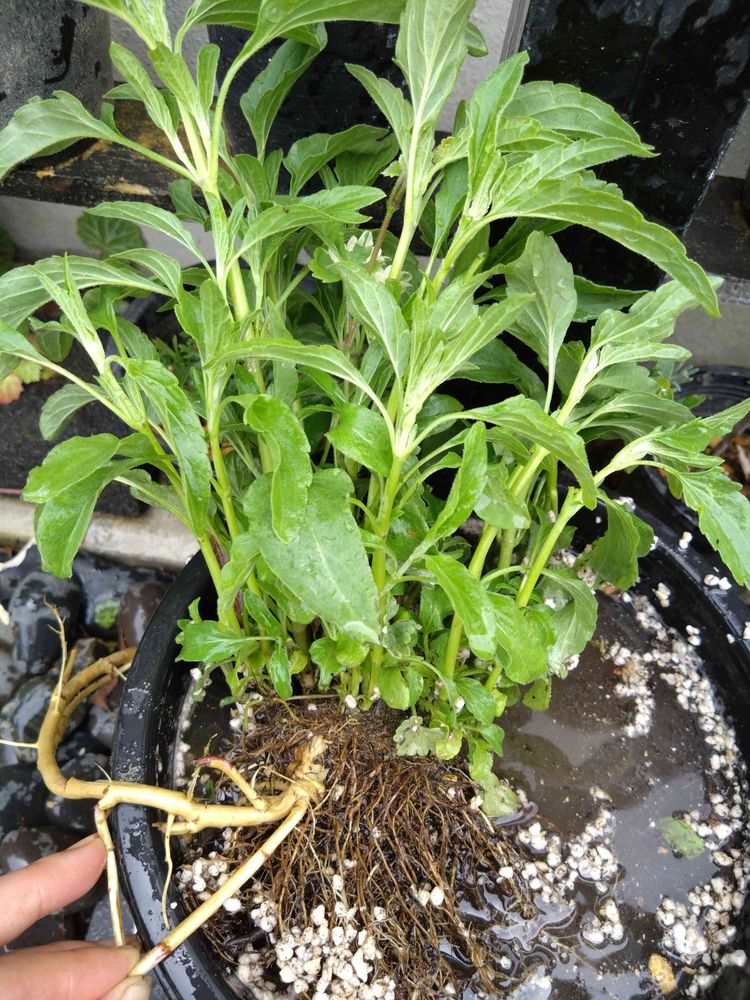 前のPICの植物抜いていってみたら、宿根したサルビア ブルーサリーファンの根元から