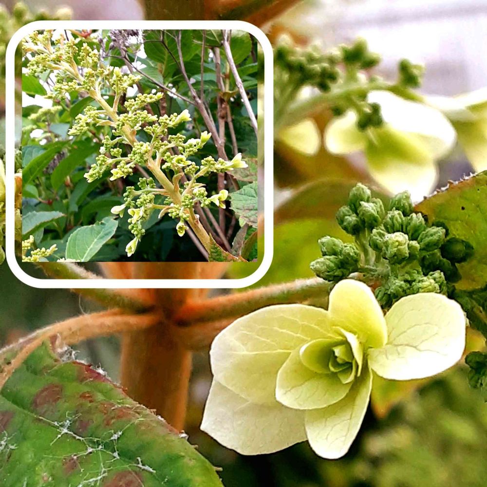 カシワバアジサイの大きな房の所々にお花が咲いていましたꕤ…˖*
