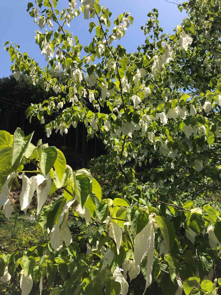 みどり市小平の里に行く途中のお宅に、満開のハンカチの花が咲き誇っていました。😊👍🎶📸