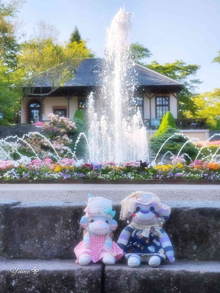 強羅公園の春はお花がいっぱいで噴水⛲️とのコラボは爽やかで素敵ね✨