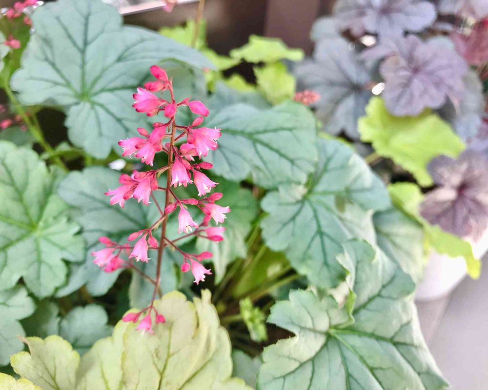 ピチピチの新葉が美しいヒューケラたちのお花が咲きだしました✨