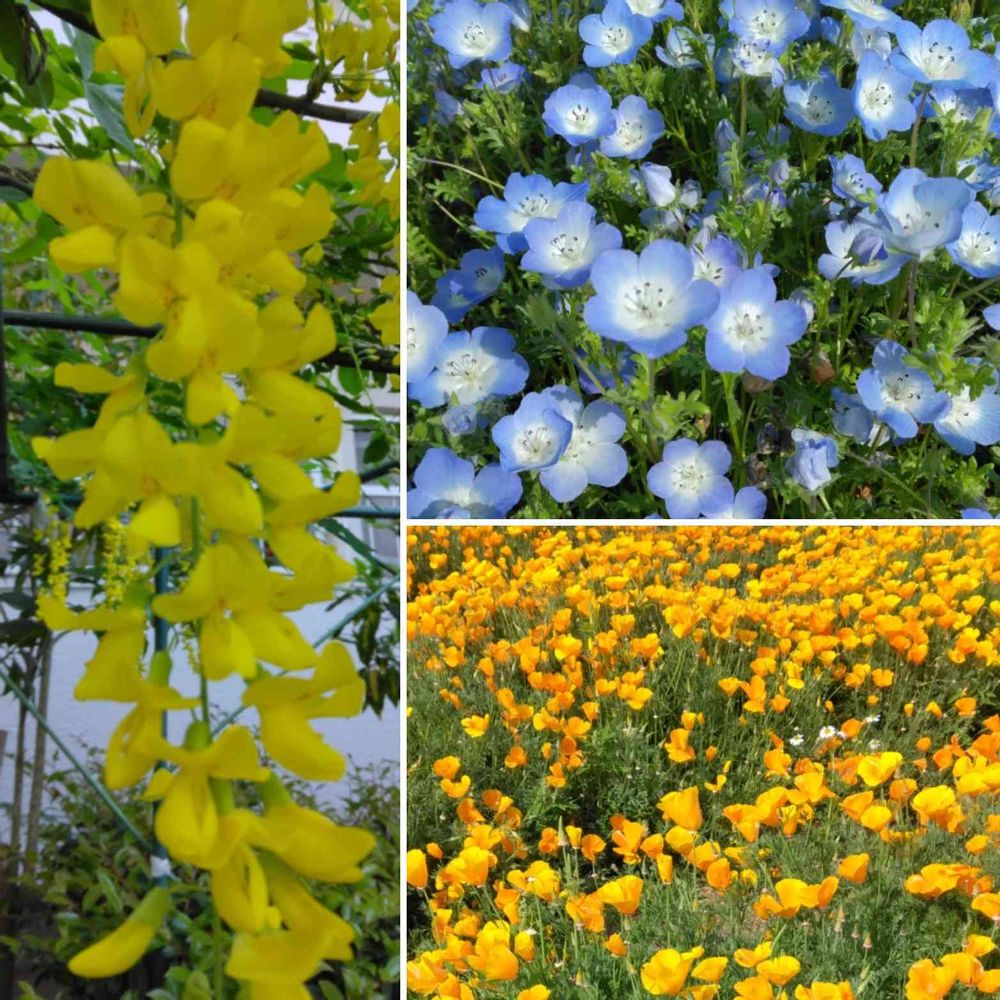 出掛けて迷って着いた公園には、綺麗な花畑🤗ネモフィラ、カリフォルニアポピー等々✨✨池にはゴイサギ、オオバン、カルガモが🦆