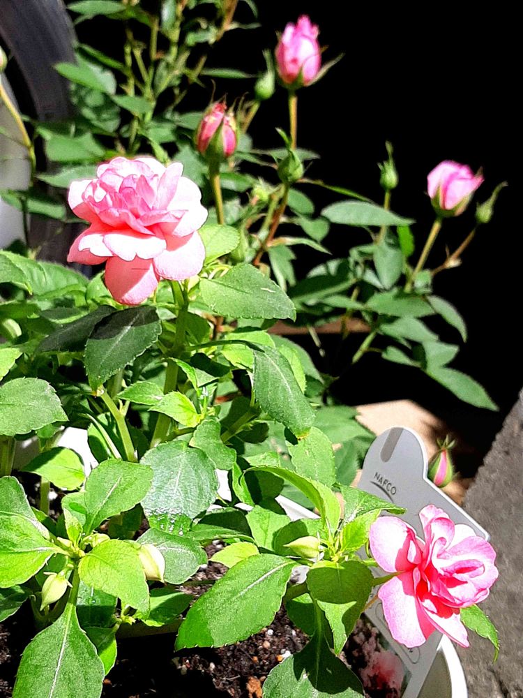 小さな庭,カリフォルニアローズ フィエスタ ピンクラッフル,花のある暮らしの投稿画像