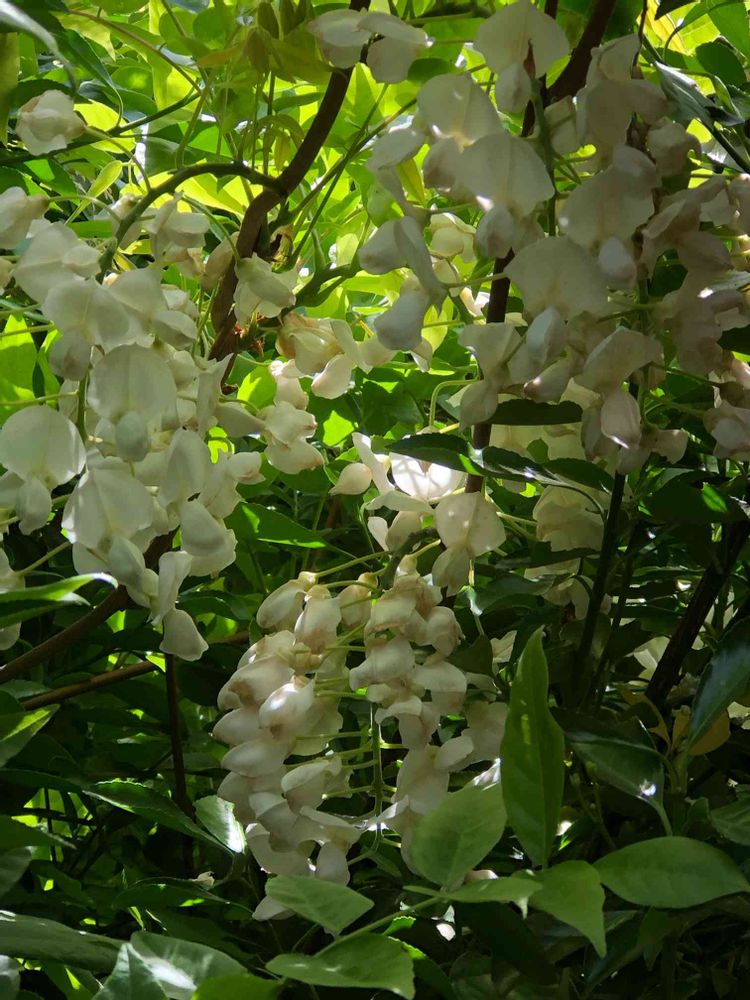 白い藤の花、実家の生け垣に絡まり、綺麗に咲いてました。