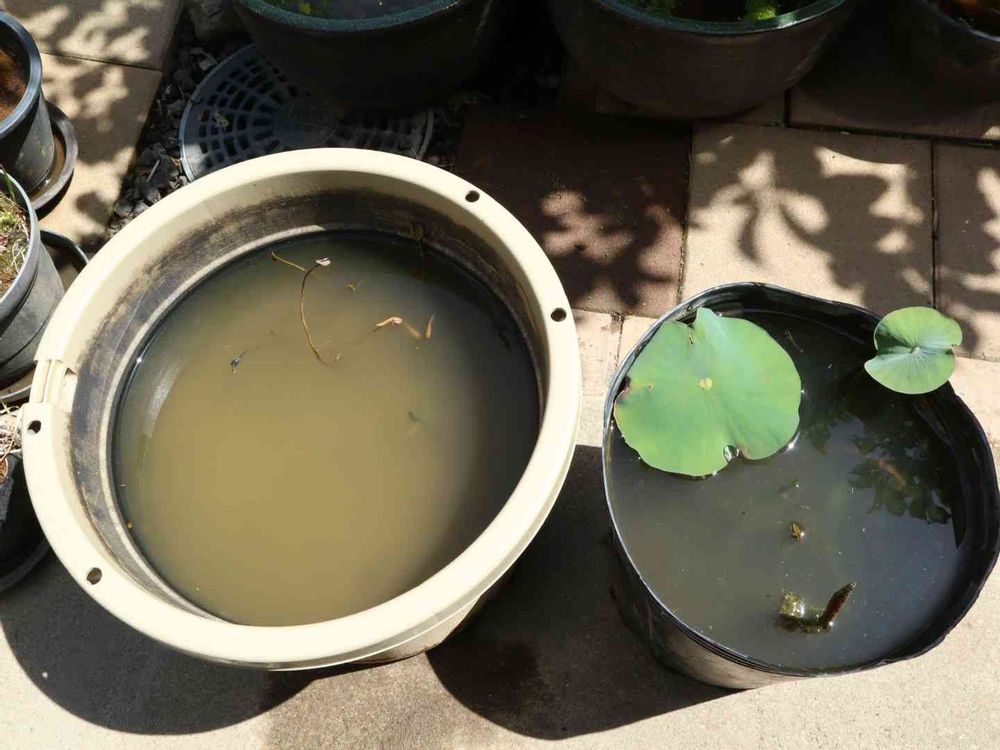 3月に植え替えしたハスの「小舞妃」、右は予備で左はメインのタライですがどうやら蓮根駄目になってそうです。浮葉が展開する前に枯れてしまいます!私のGS先輩でもあり勝手ですが私のハス師匠wの犬嫁さんの投稿を読み返しますと、どうやら土にガスが溜まって蓮根を腐らせてしまう症状のような感じです。あんなに立派で綺麗な蓮根だったので病気はないと思いました!