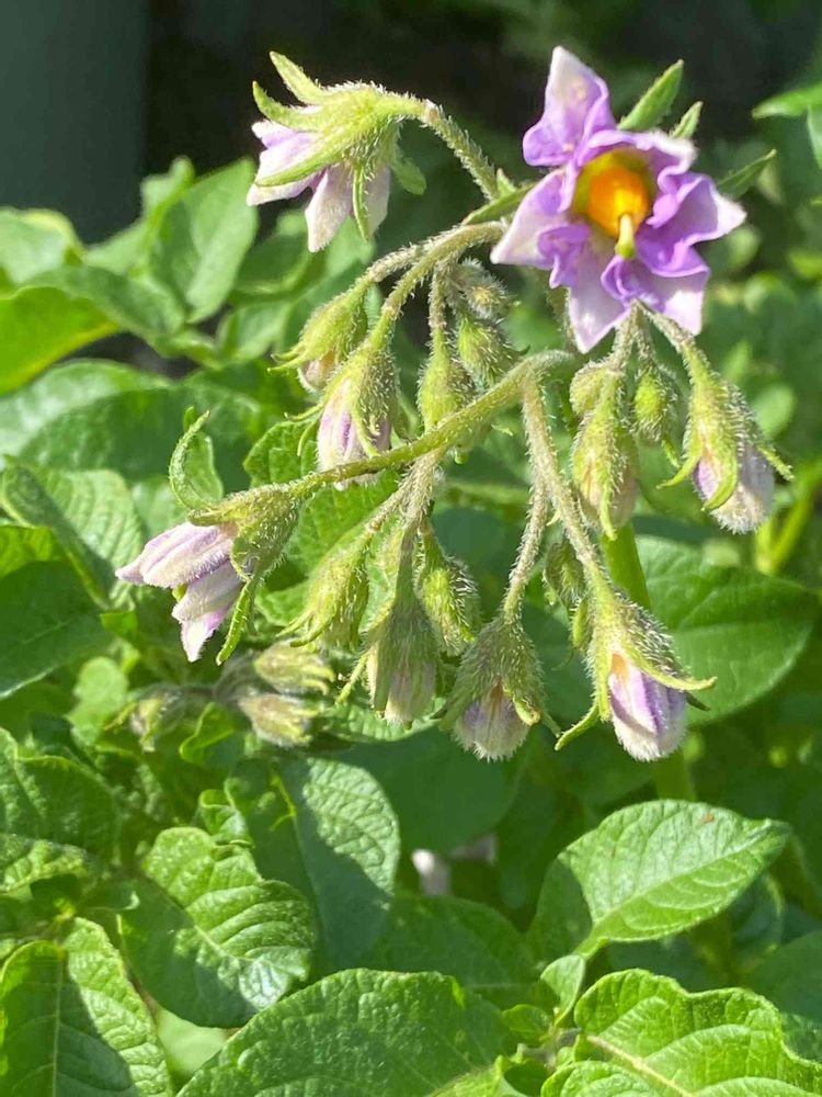 ジャガイモのお花は、茄子の花にそっくりで、やっぱりナス科なんだなぁと納得します。