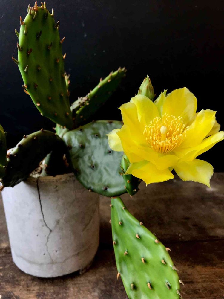 這いウチワご咲きました。撮影するには日差しが強すぎるので屋内で撮ろうと思い、鉢に手をのばすと手が少しサボテンに触れました。するとそこには小さなトゲ(芒刺)が8本ほど刺さっていました。大きくなるのはいいけど、棘がキツすぎです。