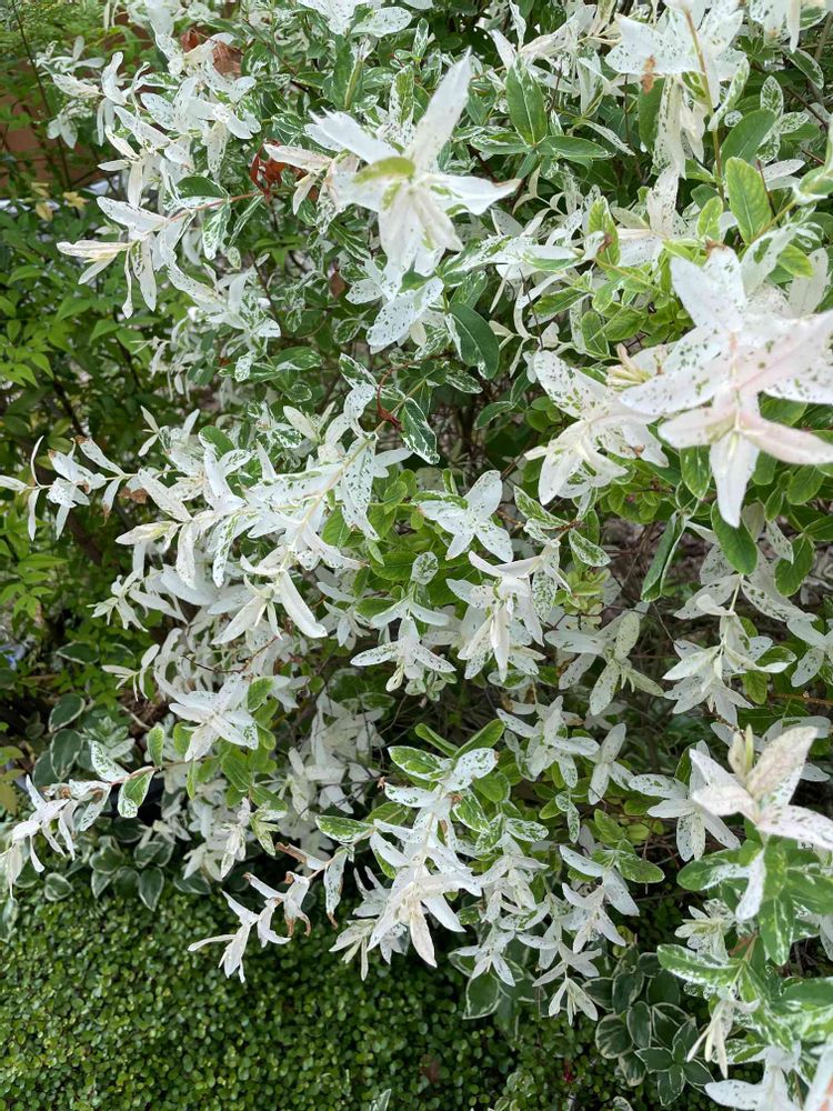 斑入りの緑と白の葉っぱ。会社の庭に植わってました。
