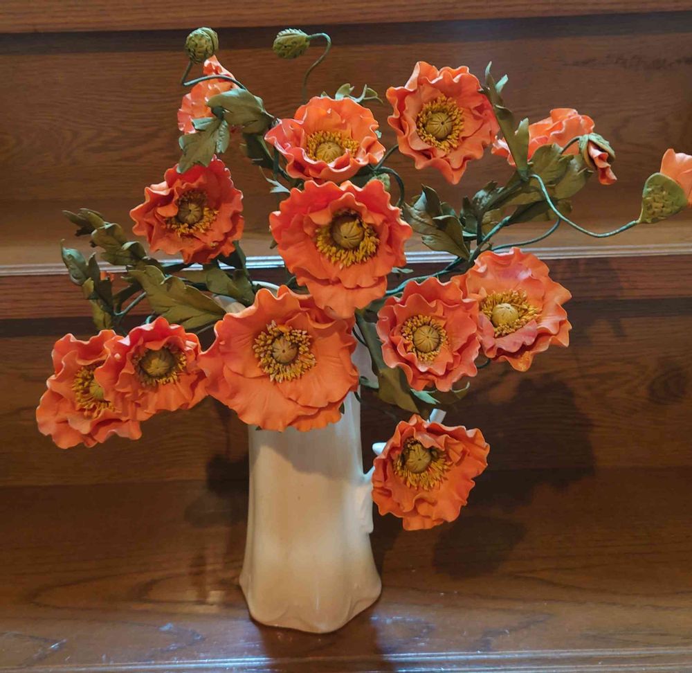 4つの作品見せてもらいましたが、ゴールドっぽいバラも素敵でしたが、このポピーも華やかで良いですね。