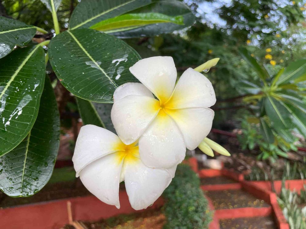 南インドマドゥライの朝🇮🇳雨に濡れたプディカが悄らしく咲いていました〜