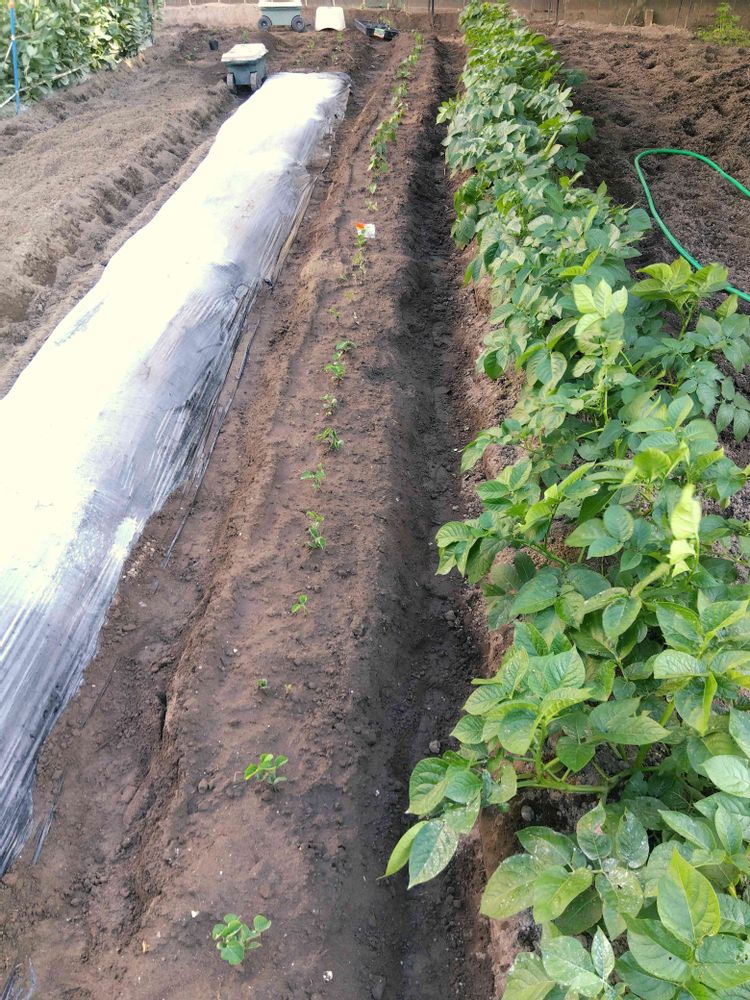 昨日はポットに撒いた湯上がり娘とさつきみどりを植えました。