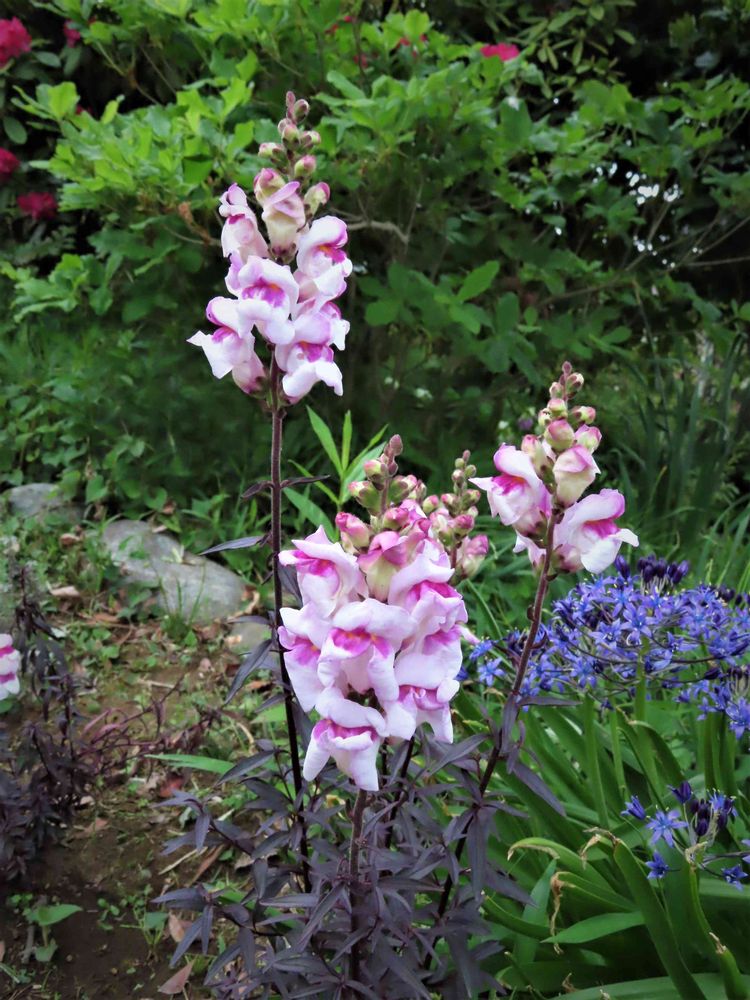 葉が銅色の「キンギョソウ」に出会えました。 パチリ