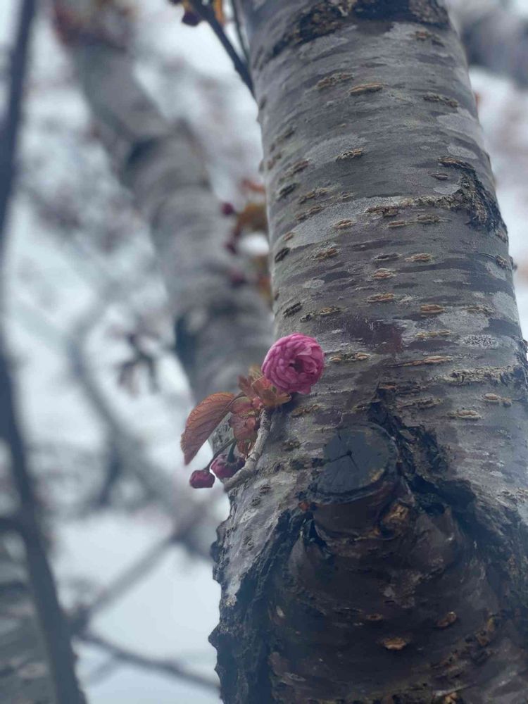 遅咲きの八重桜🌸が ようやく ひとつだけ 咲きました💓