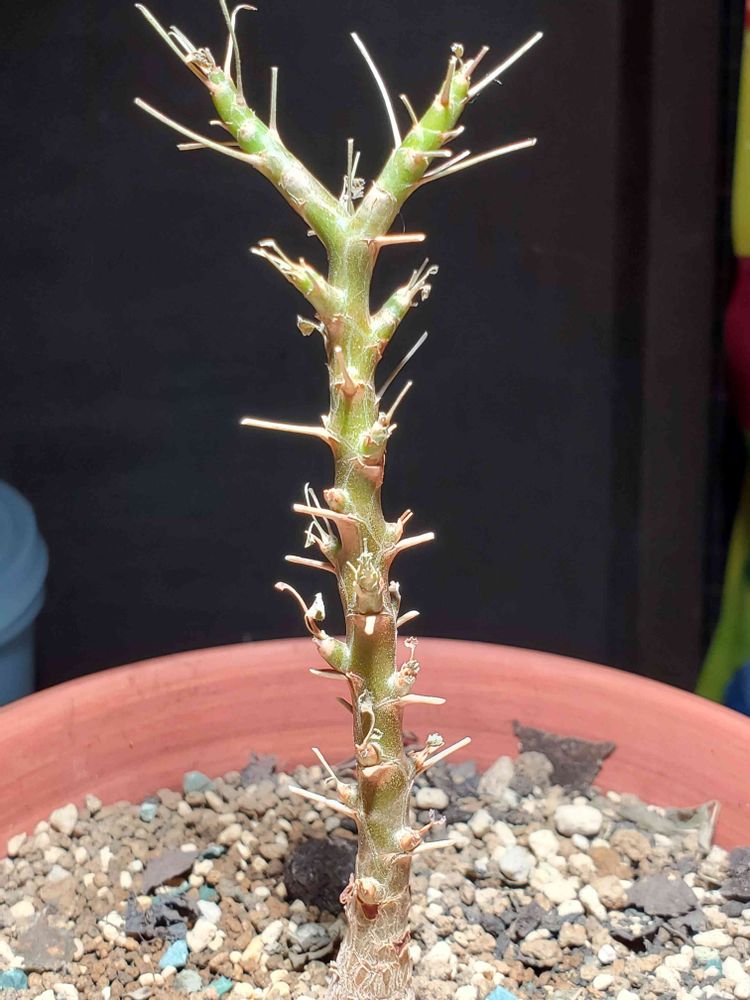 可愛らしい葉が全て落ちて、GSアプリの枠と同じ黄緑色だった幹肌が、モンソニア現地株みたいな青蝋色に変色😰