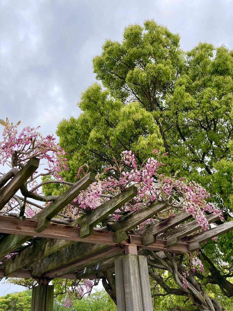 毎年 素敵なピンクのフジの花が咲く 七里の渡し公園の藤棚が。。。さみしい