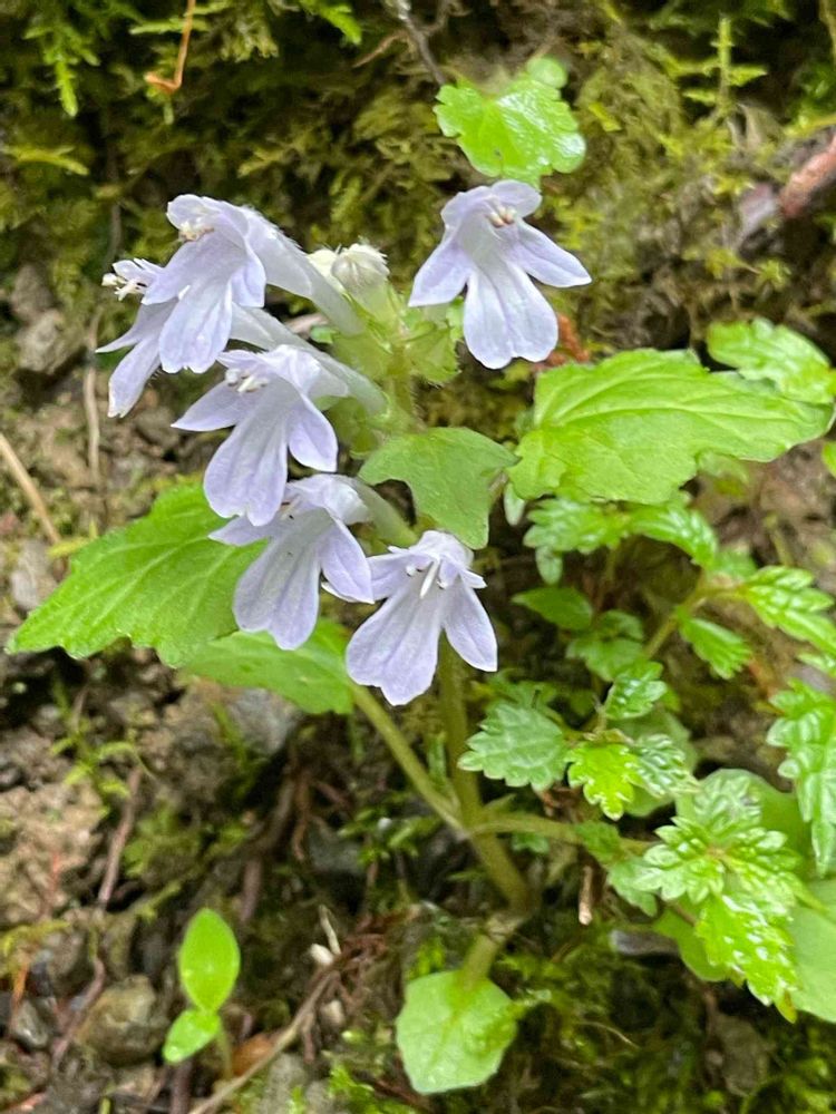 薄暗い道路沿いの土手に、淡紫色🟣の比較的大きな花を数個まとまって咲かせており、かなり目立っていました。