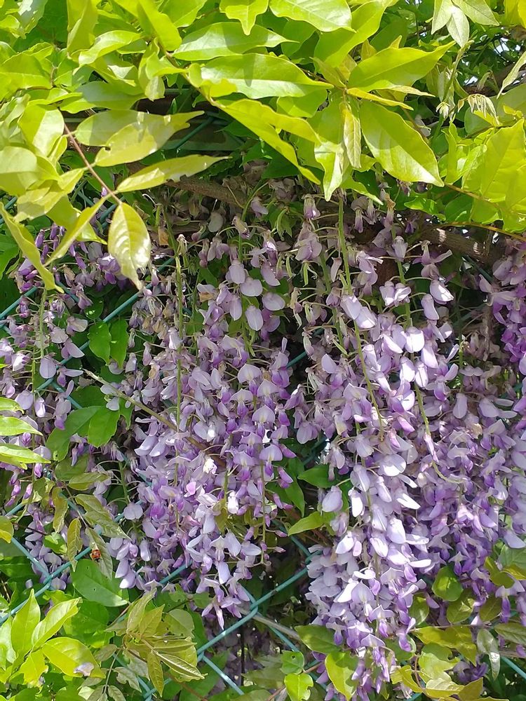 🏷️今日のお花 野生のフジ 小路のフェンスに絡みつき〜 房は短いけど〜キレイよ