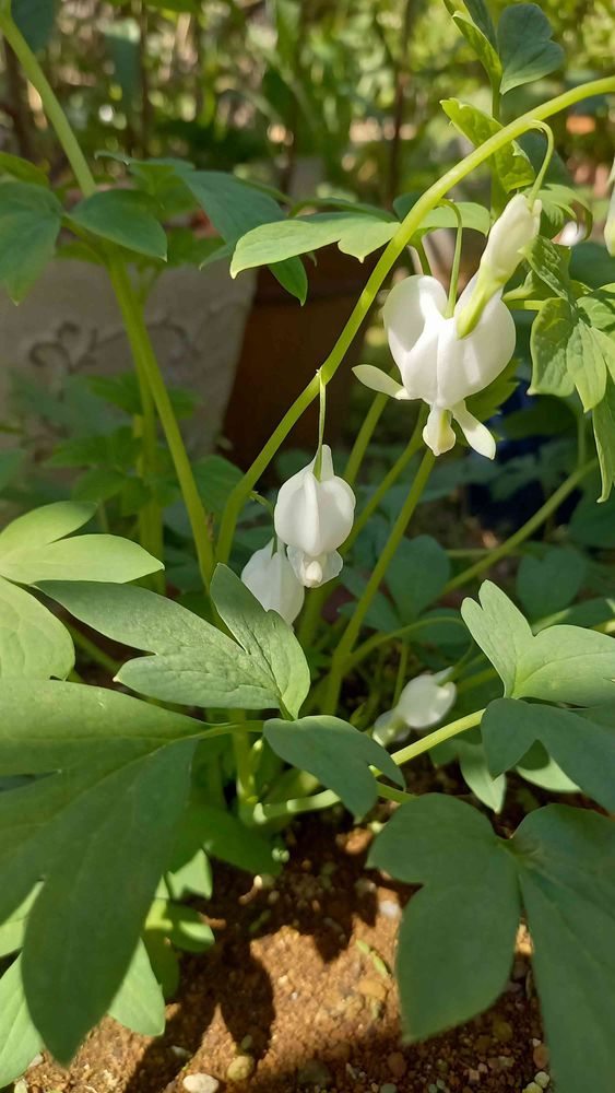 タイツリソウは、花茎はアーチ状に湾曲し、花茎一本に花が最大で15輪ほど釣り下がって咲き、あたかも鯛が釣竿にぶら下がっているように見えるため、「タイツリソウ」の名が付きました。また、仏堂の装飾具として使われる「華鬘(けまん)」(仏像の前に吊り下げて顔を隠すように使われます。)がこの花の形に似ているため、ケマンソウ(華鬘草)という名が付いたとも言われています。ちなみに、英語では「bleeding heart(血を流す心臓)」という名前です。花の先に滴のような突起があることから名付けられたのでしょう。最後に、全草、特に根茎と葉にビククリン、プロトピンなどを含みます。誤食した場合、嘔吐・下痢・呼吸不全・心臓麻痺などを引き起こすので、注意が必要です。