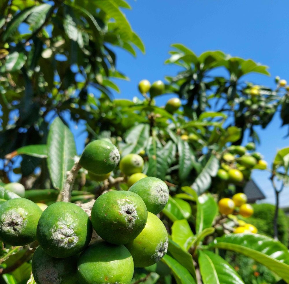 まだ青い枇杷、意外と見たこと無かったかも😆 色づいて来ないと目に付かないからでしょうね🥰 色付いたら鳥さんに狙われますか⁇