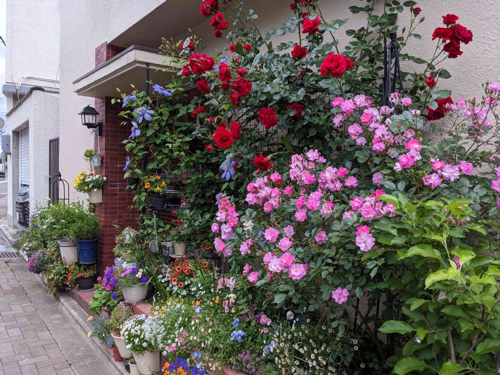 花壇のバラが満開です