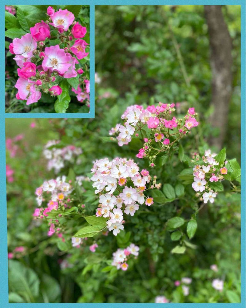 寄せ植えに使ってたミニバラ、地植えにして2~3年、風にグルングルンしながら可愛いく開花🥰