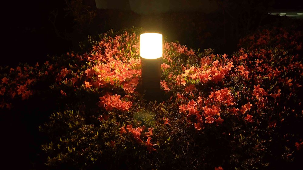夜のツツジ、常夜灯に照らされて