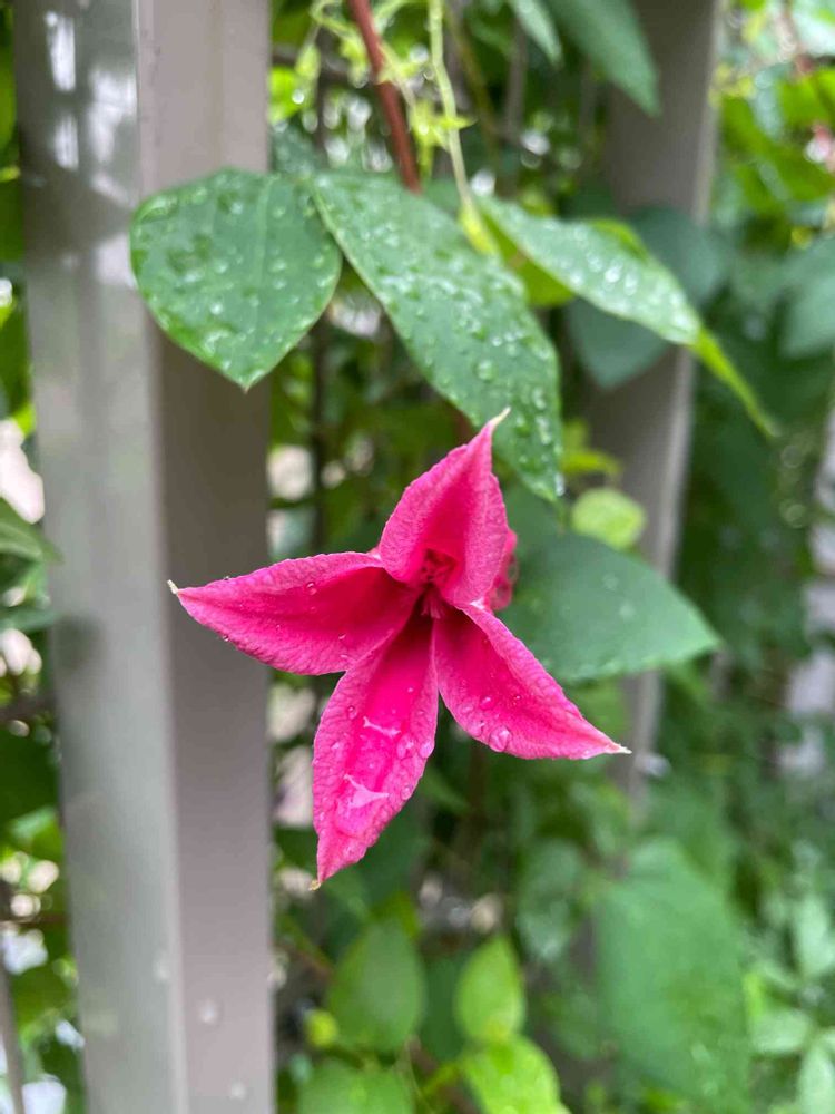 うちのクレマチスで1番旺盛に育ってます。南側に向いてたくさん咲いてますが、撮れないので、北向きの花をアップさせてます♪