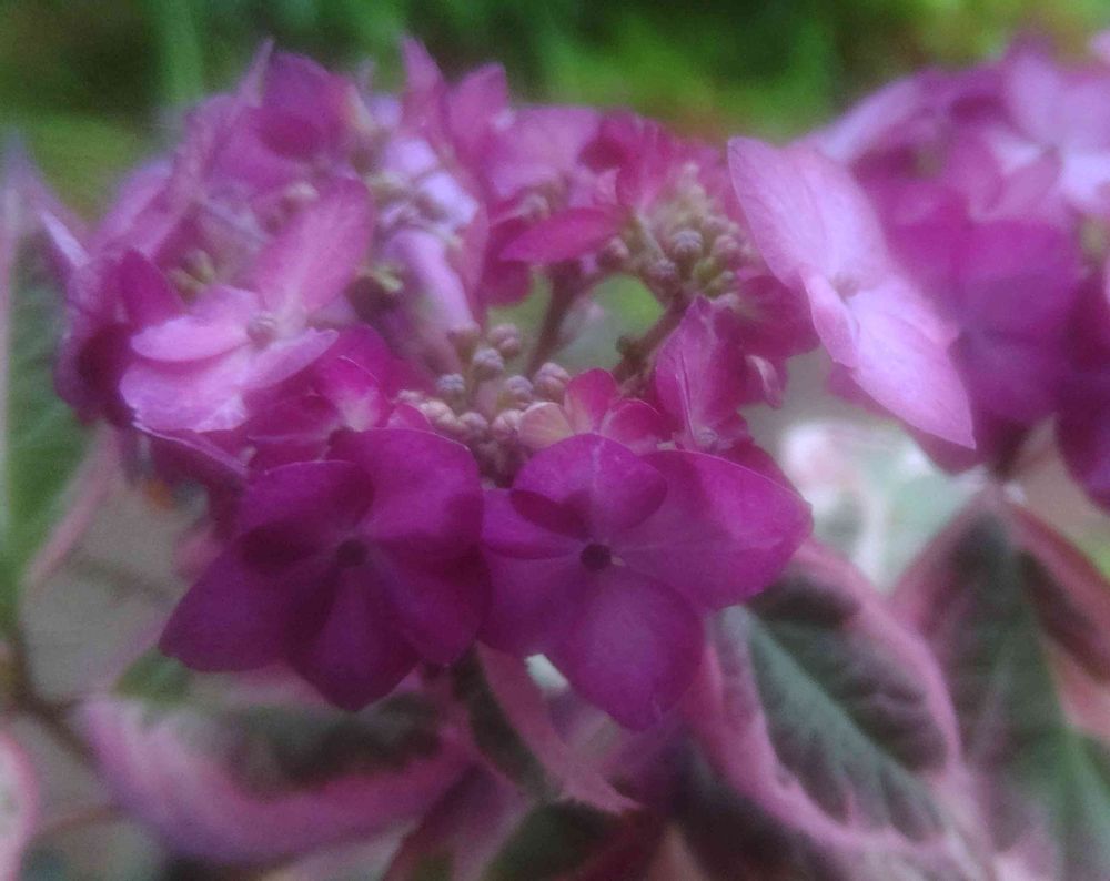 この紫陽花は、山あじさいとハイドランジアの交配種でちょっとレアな紫陽花みたいです🎶