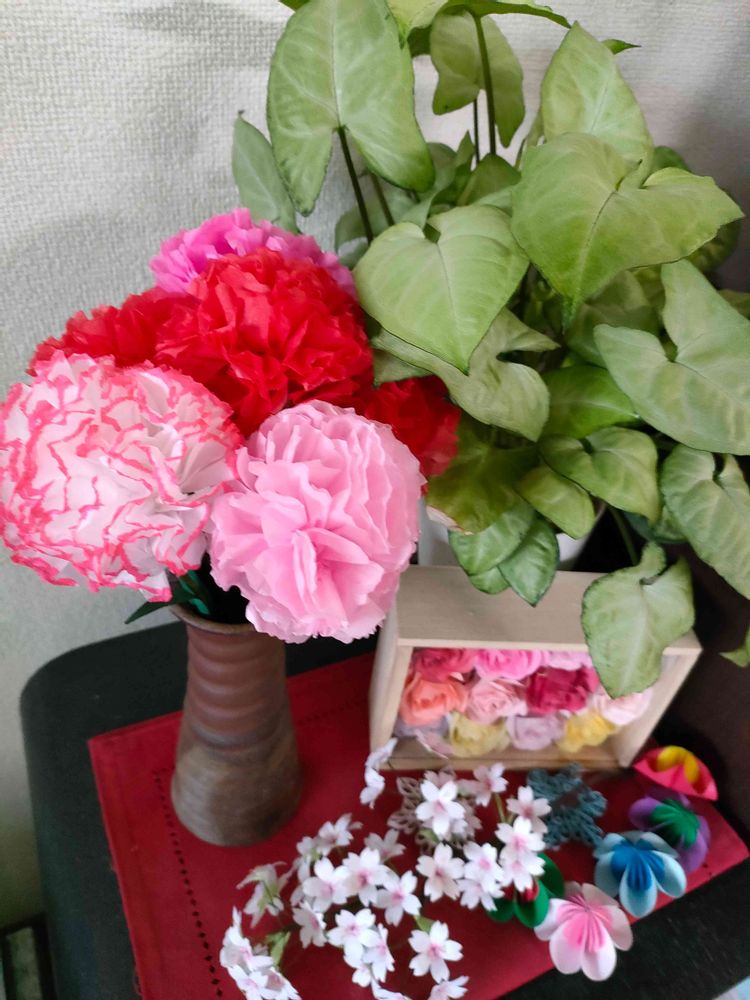 花友さんから早々カーネーション💐プレゼント🎁を頂いて嬉しい。なんとペーパークラフトですよ🥰素晴らしいでしょう💕