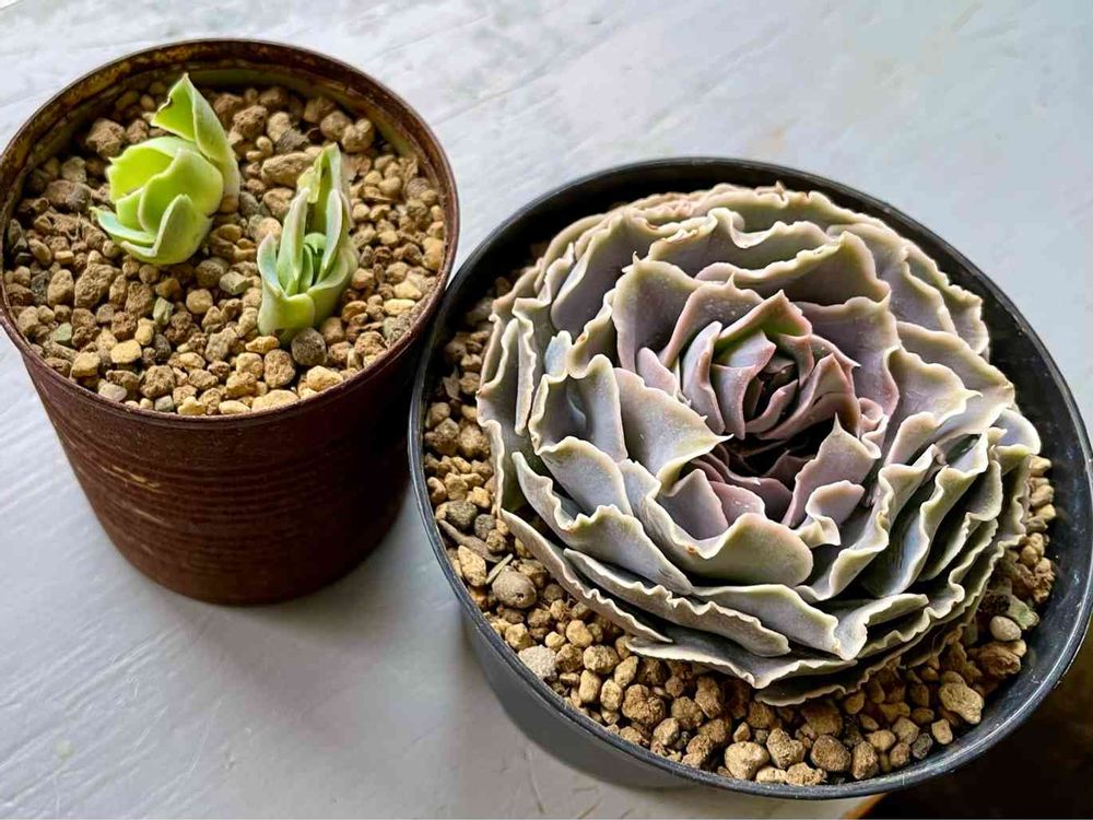 昨日ホームセンターで買ったベレンを植え替えた。ぺったんこになった子株がついていたので、外して植えた。