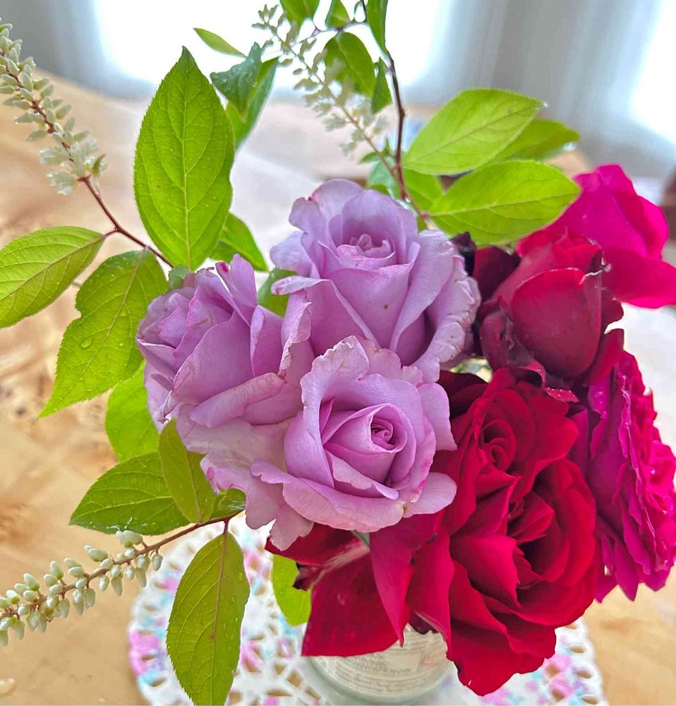 夜来香、彩、はいから、色の都合の組み合わせですが、どれも香りのバラとして有名な品種ばかりですね。