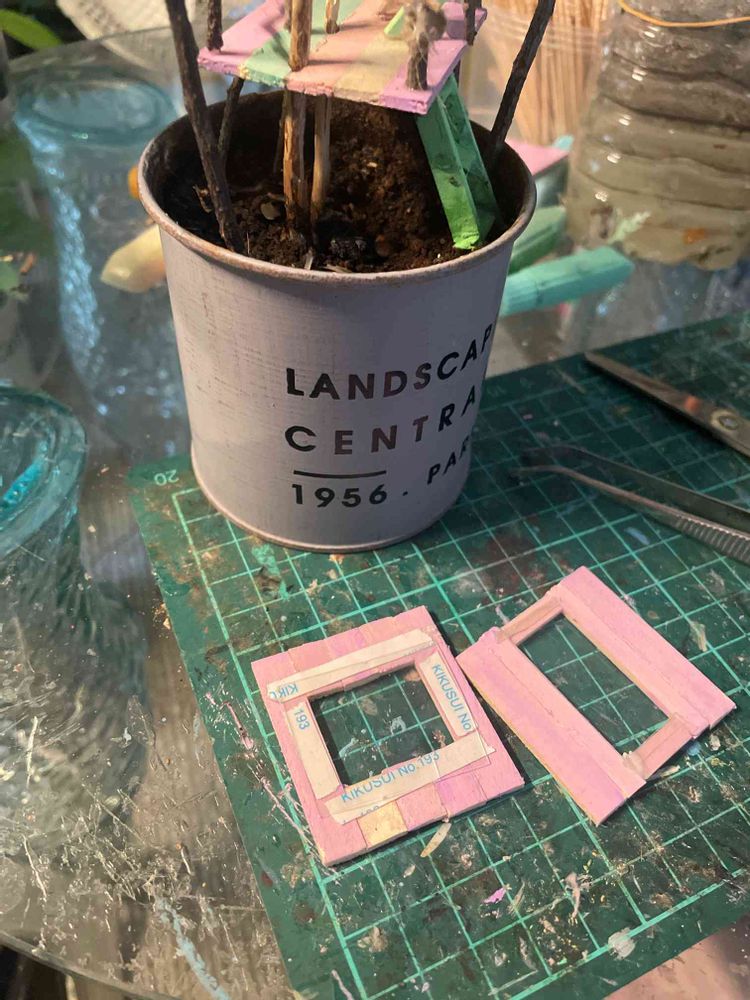 百均やら、 ホームセンターで売ってる 一番小さい観葉植物に、 ちっさい家、作ったりしてます。 ちっさい家用の家具も作ります。 窓にお弁当のふたとかのプラ貼って ガラスっぼく…電気もつきます💡