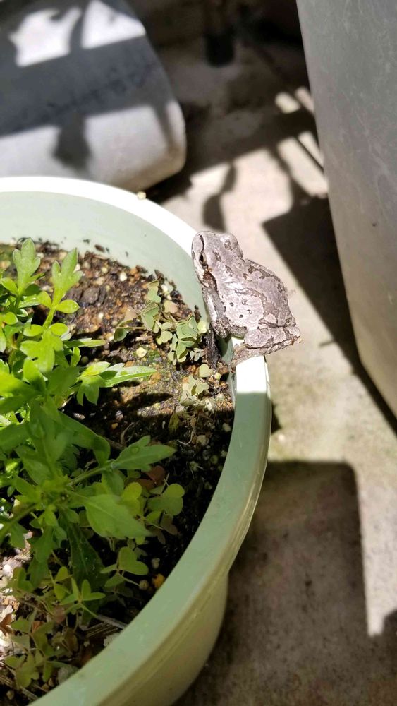 水やりをしていたら鉢から飛び出した🐸ケロちゃん。
