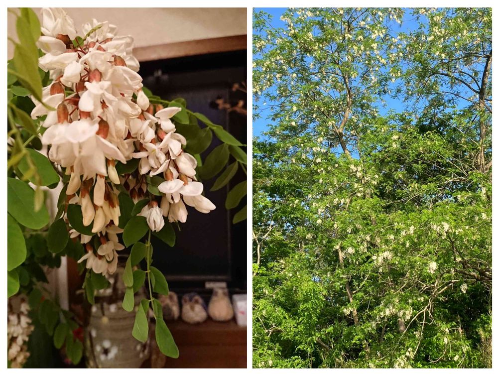 ニセアカシアの花がたくさん咲いていました。携帯持ち合わせず 一緒にいた人に写真撮って送ってと頼んで送られたのが右の写真