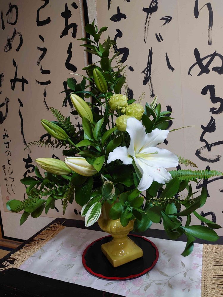 百合とトルコキキョウをプラスして法事用の装花に仕上がりました👍